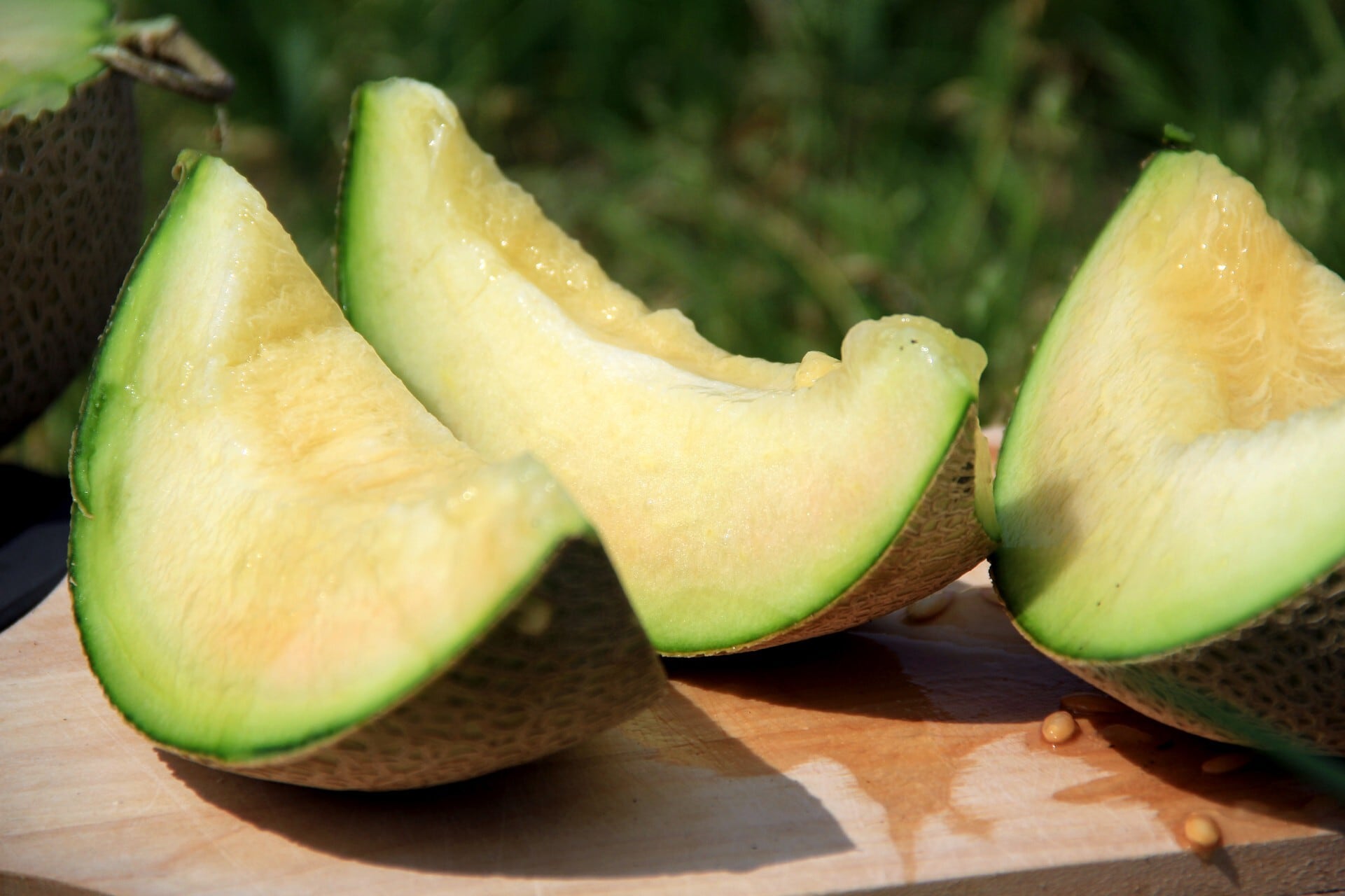 メロンは、お尻が柔らかくなったら、冷蔵庫に2〜3時間冷やしてお召し上がり下さい。